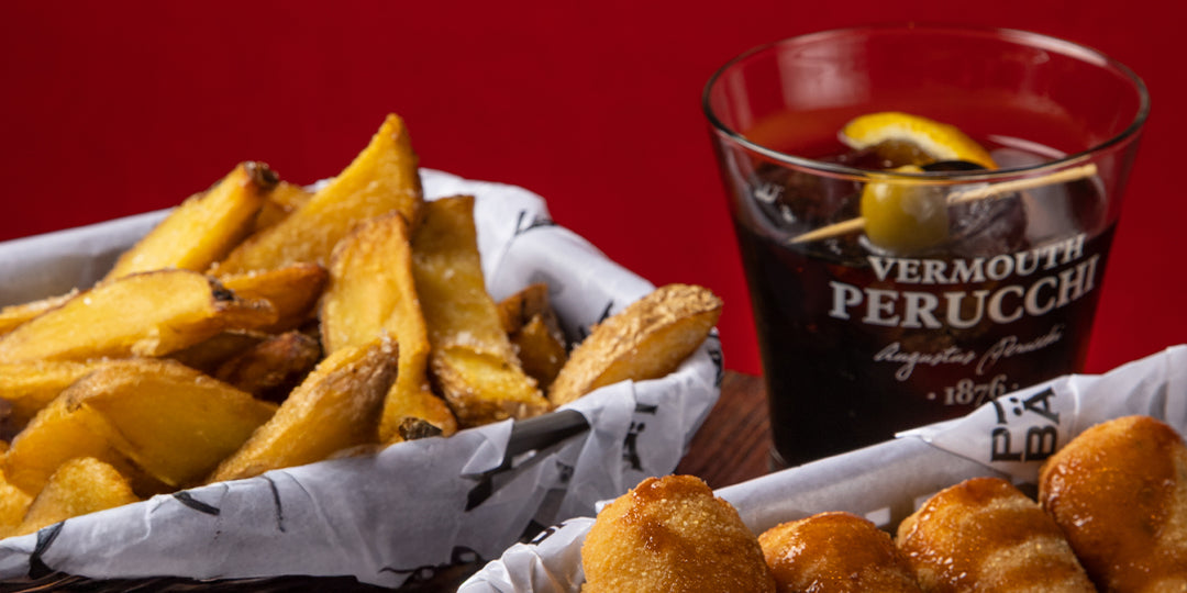 Con salsa criolla, cebolla caramelizada, rúcula y parmesano