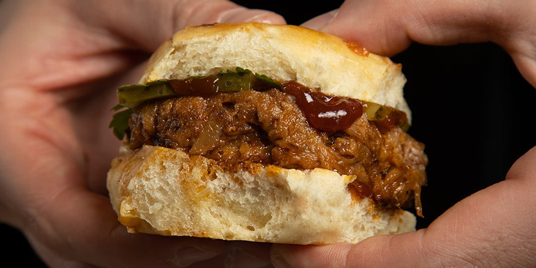 Polpa di maiale sfilacciata, cetriolini, coriandolo, salsa BBQ
