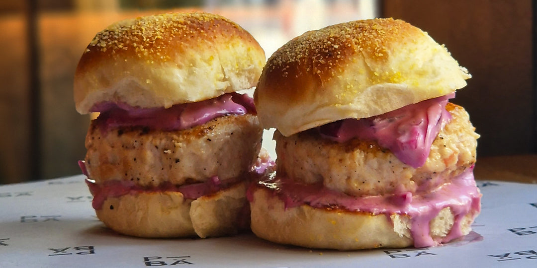 Burger de poulet et bacon, choucroute de chou rouge. ÉPICÉ!