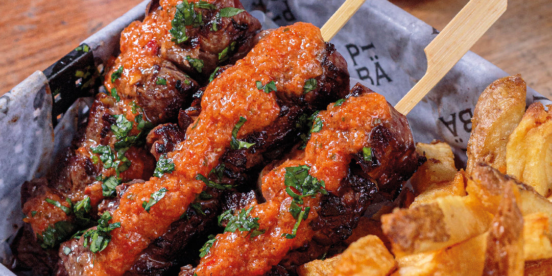 Com échalotes e salsa criolla (tomate, cebola, pimentão) emulsionada