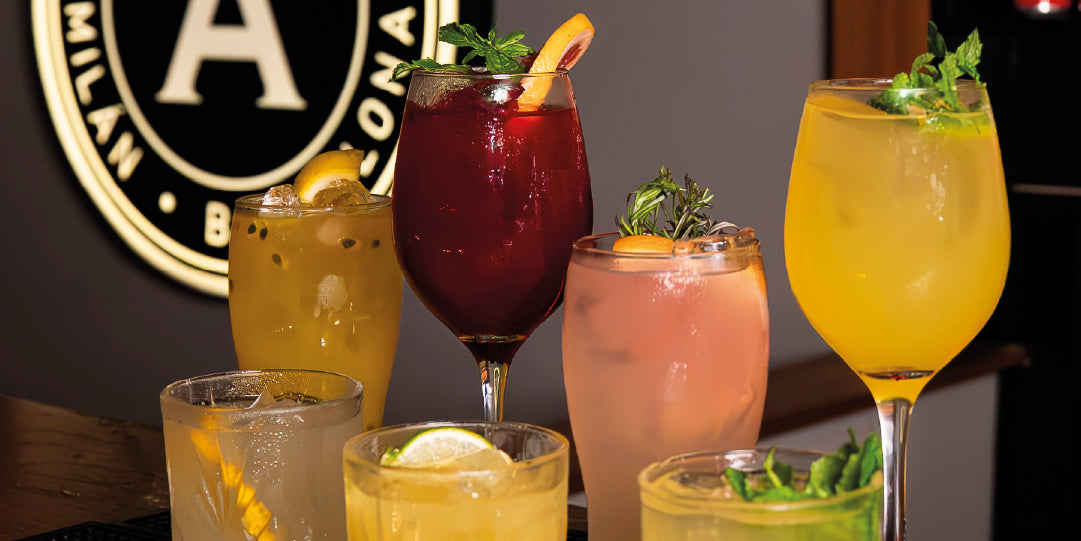 Água com gás, cítrico Terma, suco de laranja e limão, xarope de menta