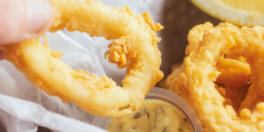 Cada porção contém 3 unidades, e vêm com batatas fritas